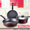• 3 Pcs/set Non-stick Cookware Frying Pan Soup Pot Wok For Kitchen Cooking Tool U $125.89
